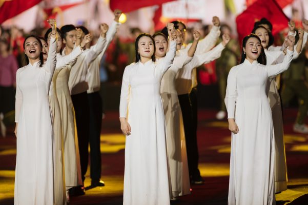 Mỗi tiết mục là một chặng đường, mỗi giai điệu là một mốc son, tái hiện hành trình 80 năm dựng xây và bảo vệ Tổ quốc. Giữa biển ánh sáng và âm thanh, bước chân sinh viên vững vàng, giọng hát vút cao, tạo nên sức lan tỏa mạnh mẽ – vừa hùng tráng, vừa xúc động.