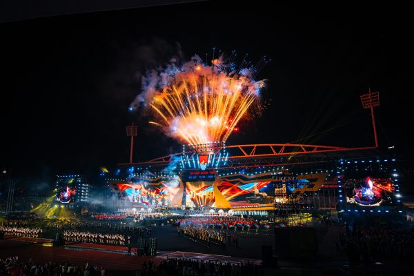 Tối 1/9, Sân vận động Quốc gia Mỹ Đình không chỉ là nơi diễn ra một chương trình nghệ thuật đặc biệt, mà đã trở thành không gian hội tụ của lịch sử và tự hào dân tộc. Hàng vạn khán giả hòa chung nhịp đập cùng hàng nghìn nghệ sĩ, trong đó gần 400 sinh viên và giảng viên Trường Cao đẳng Nghệ thuật Hà Nội vinh dự được góp phần tạo nên những đại cảnh rực rỡ chào mừng Kỷ niệm 80 năm Quốc khánh nước Cộng hòa xã hội chủ nghĩa Việt Nam.
