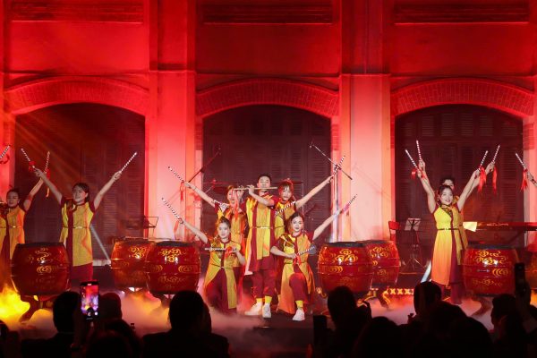 Âm thanh trống hội rộn ràng mở màn chương trình đã khơi dậy niềm tự hào, sức trẻ và khát vọng vươn xa của thế hệ nghệ sĩ tương lai. Tiết mục hòa tấu trống “Thăng Long đón chào kỷ nguyên mới” do các giảng viên và HSSV khoa Nhạc cụ truyền thống dàn dựng đã không chỉ là màn chào sân ấn tượng, mà còn là thông điệp đẹp về truyền thống – hiện đại hòa quyện trong một nhịp đập.