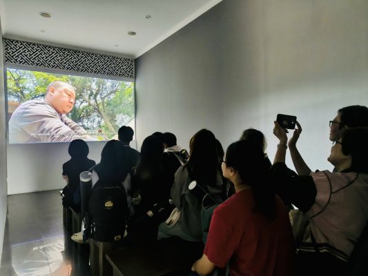 Điều đặc biệt thú vị là tại đây, các em còn được gặp gỡ thầy Trưởng khoa Nguyễn Trường Linh qua bộ phim giới thiệu về nghệ thuật sơn mài Việt Nam được trình chiếu ngay tại bảo tàng. Hình ảnh người thầy quen thuộc xuất hiện trong không gian triển lãm đã mang lại cho các em niềm tự hào và thêm động lực để theo đuổi con đường nghệ thuật.