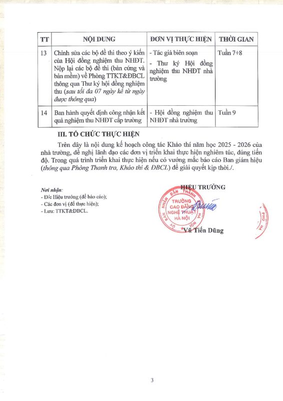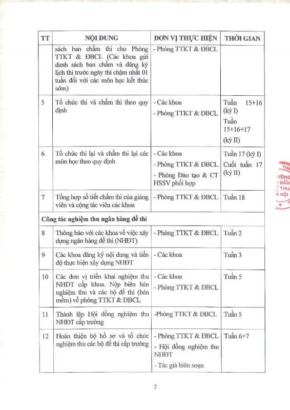 Kế hoạch Công tác khảo thí năm học 2025 – 2026