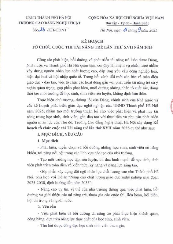 Kế hoạch Tổ chức cuộc thi Tài năng trẻ lần thứ XVII năm 2025