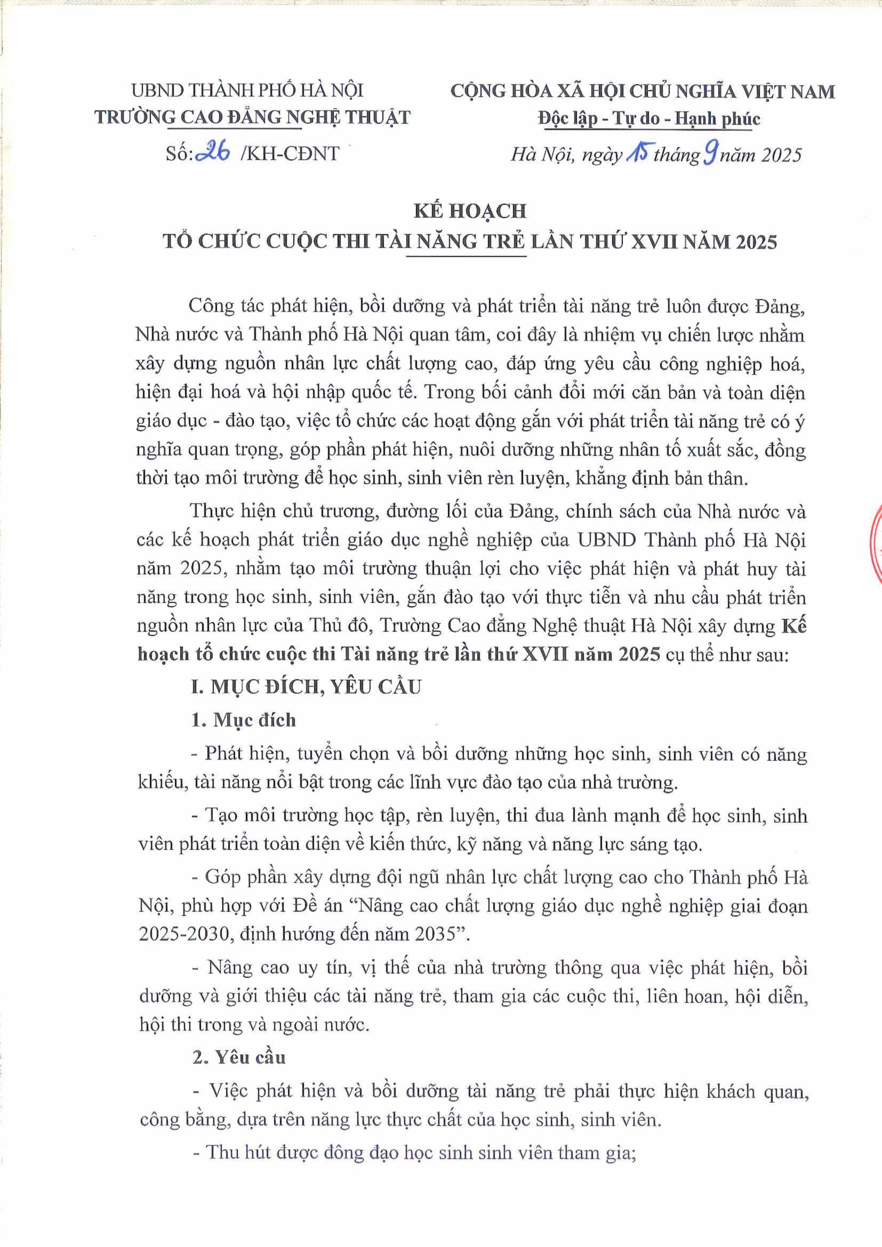 Kế hoạch Tổ chức cuộc thi Tài năng trẻ lần thứ XVII năm 2025 Đăng vào 13/10/202524/10/2025 bởi TrangPH