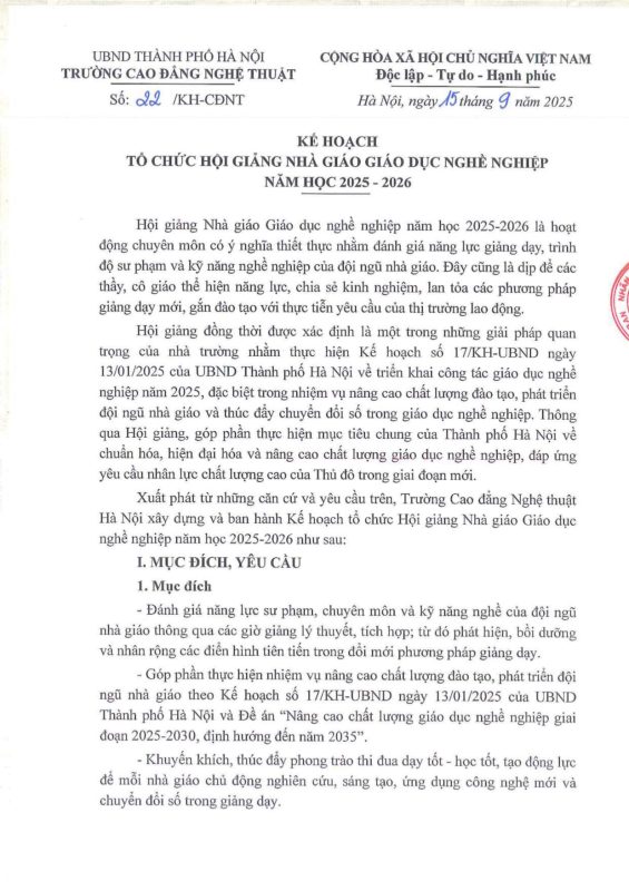 Kế hoạch Tổ chức Hội giảng nhà giáo giáo dục nghề nghiệp năm học 2025- 2026 Đăng vào 13/10/2025 bởi TrangPH