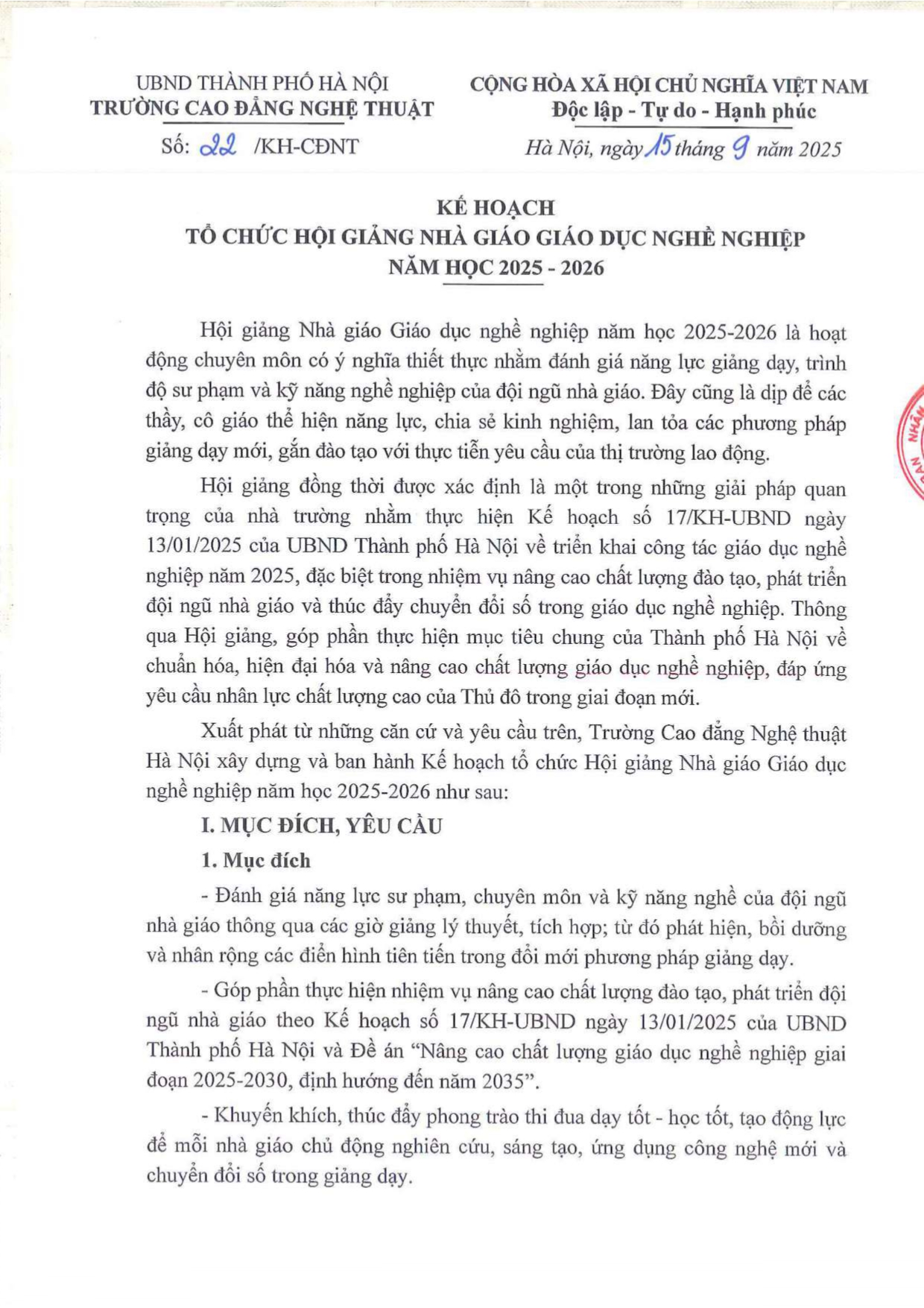 Kế hoạch Tổ chức Hội giảng nhà giáo giáo dục nghề nghiệp năm học 2025- 2026 Đăng vào 13/10/202524/10/2025 bởi TrangPH