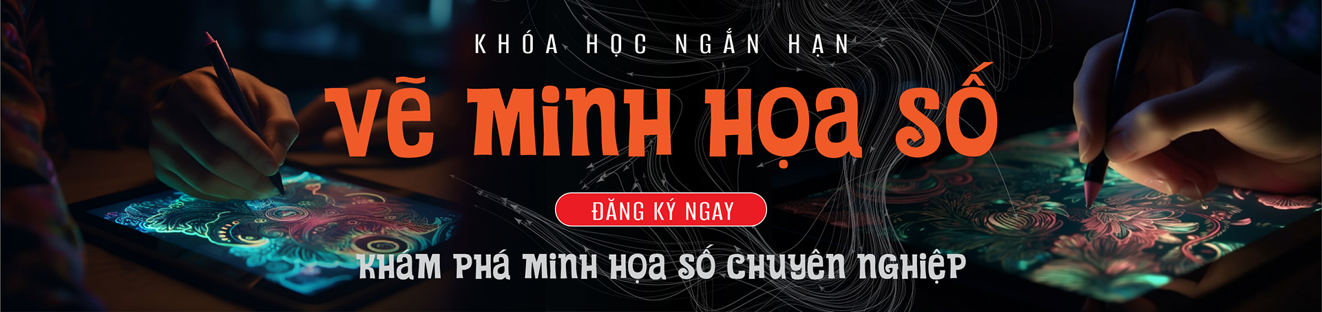 Yêu cầu trang bị học tập: iPad + Apple Pencil (Procreate) hoặc Laptop cài Adobe Photoshop + Bảng vẽ Wacom. (để làm bài tại nhà)