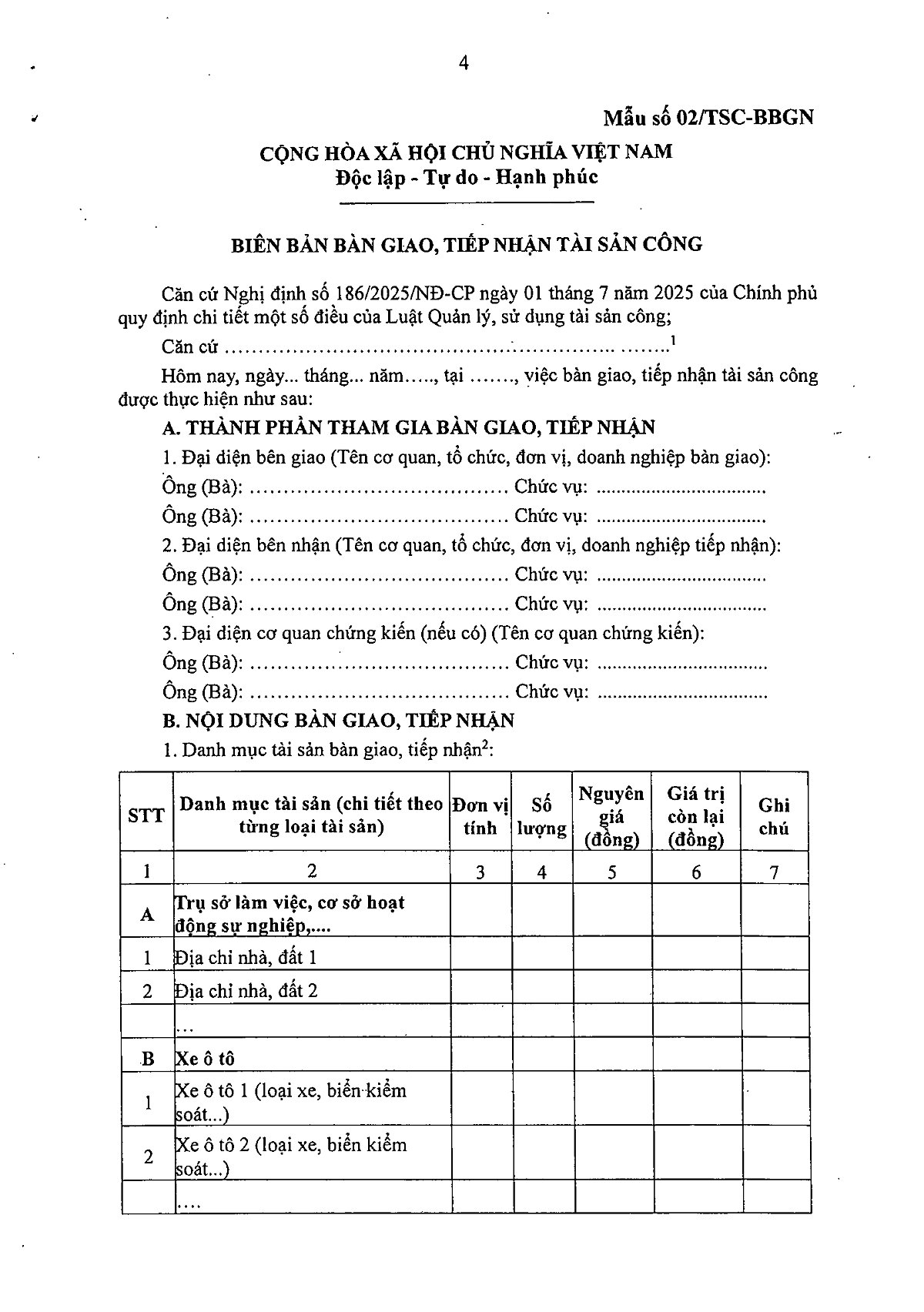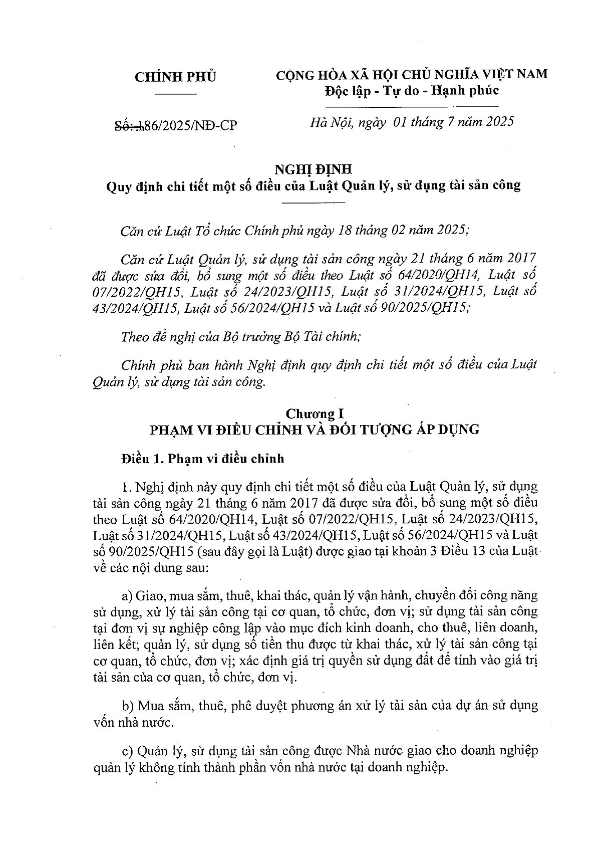 Nghị định số 186/2025/NĐ-CP Quy đinh chi tiết một số điều của Luật Quản lý, sử dụng tài sản công Đăng vào 06/11/202508/11/2025 bởi TrangPH